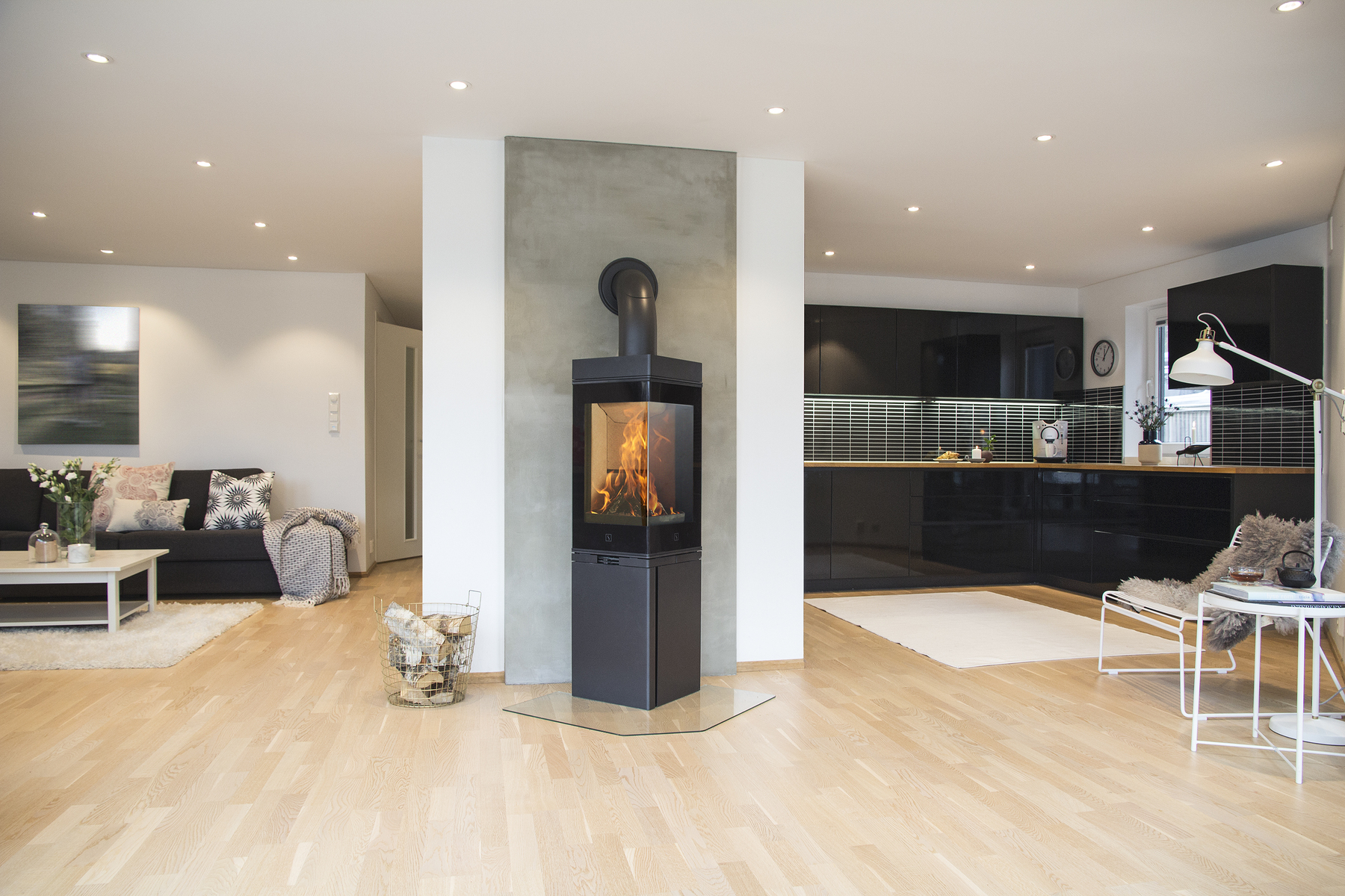 Craquez pour l'élégance du SCAN 80-2, avec son design inspiré du cubisme. Il offre une vision optimale à 180° sur le feu grâce à sa vitre pliée. Dans la grande tradition du design danois, la porte et sa poignée ont été élégamment intégrées dans la partie basse du poêle pour un rendu épuré et moderne.